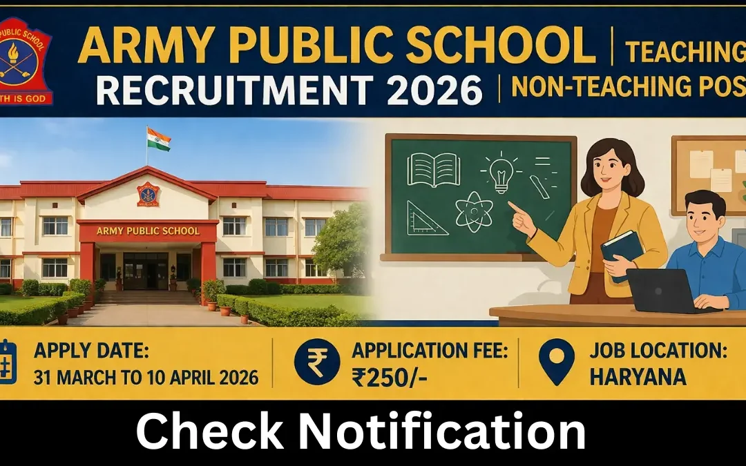 Army Public School Recruitment 2026: The Army Public School Ambala has released the latest notification for the recruitment of Teaching & Non-Teaching Posts. The Army Public School Ambala Recruitment 2026 notification has been released on 31 March 2026 and application form will be accepted from 31 March 2026 to 10 April 2026. The eligible candidates can apply for Army Public School Ambala Recruitment 2026 form the official website apsambala.edu.in.