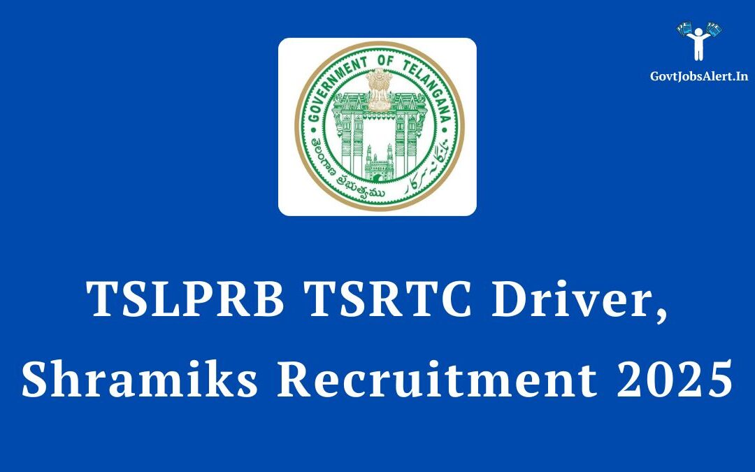 TSLPRB TSRTC Driver, Shramiks Recruitment 2025 Notification Released Here’s some exciting news for job seekers in Telangana! The Telangana State Level Police Recruitment Board (TSLPRB) has announced a major recruitment drive for the Telangana State Road...