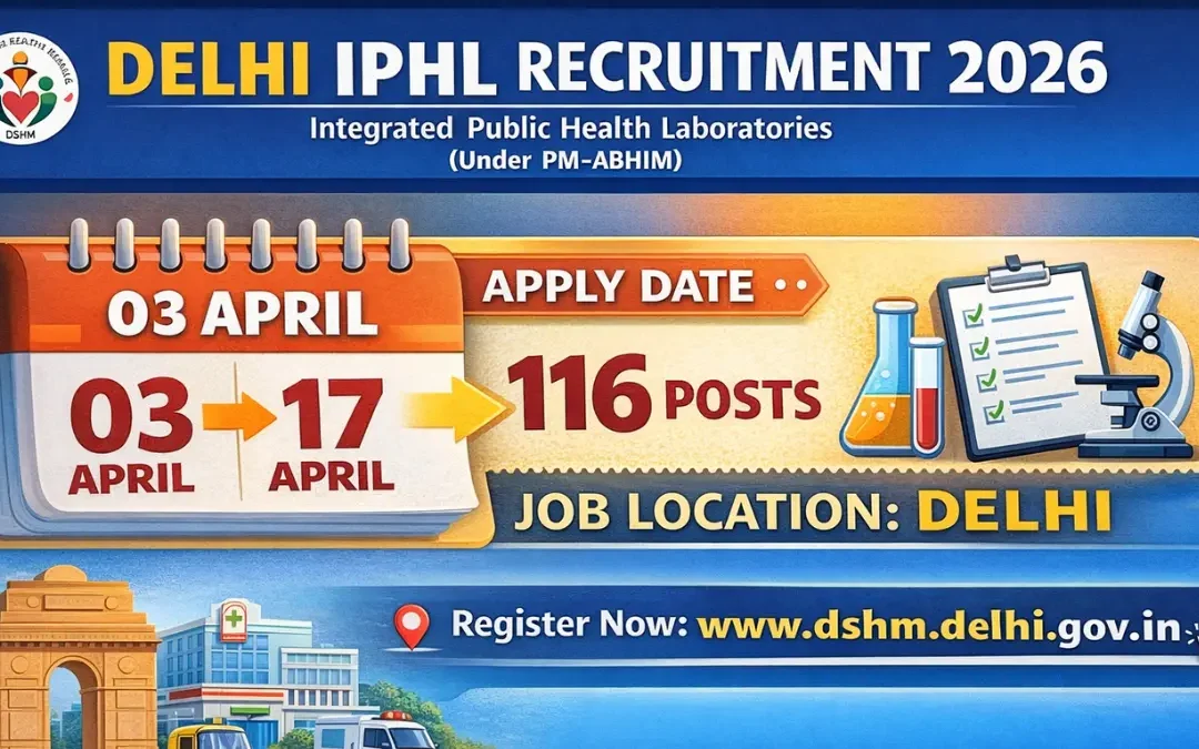 Delhi IPHL Recruitment 2026: Delhi State Health Mission has released the official notification for Delhi IPHL Recruitment 2026 under Pradhan Mantri Ayushman Bharat Health Infrastructure Mission (PM-ABHIM). This recruitment is conducted for various posts including Pathologist, Microbiologist, Biochemist, and Lab Technician on a contractual basis through interview.