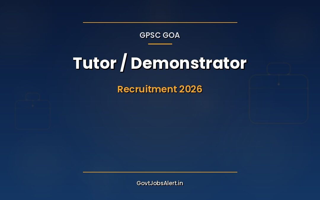 Goa Public Service Commission (GPSC) is the constitutional body responsible for conducting recruitment examinations and making appointments to government posts in the state of Goa. This recruitment covers 82 Tutor / Demonstrator posts at Goa Medical College across 19 medical departments, plus 1 Dietician post under the Directorate of Health Services and 1 Insurance Medical Officer post under the Labour Department.
