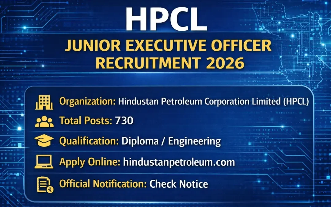 HPCL Junior Executive Officer Recruitment 2026: The Hindustan Petroleum Corporation Limited (HPCL) has released the official notification for HPCL Junior Executive Officer Recruitment 2026 to fill Junior Executive Officer (JEO) posts in different disciplines. This recruitment is a great opportunity for candidates seeking a career in a Navratna PSU under the Government of India.