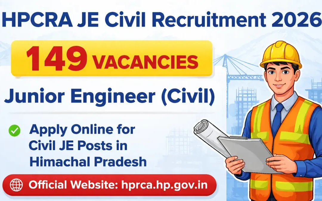 HPCRA JE Civil Recruitment 2026: The Himachal Pradesh Rajya Chayan Aayog has released the HPCRA JE Civil Recruitment 2026 notification for 149 vacancies of Junior Engineer (Civil) posts. This is a great opportunity for diploma and engineering candidates seeking a government job in Himachal Pradesh.