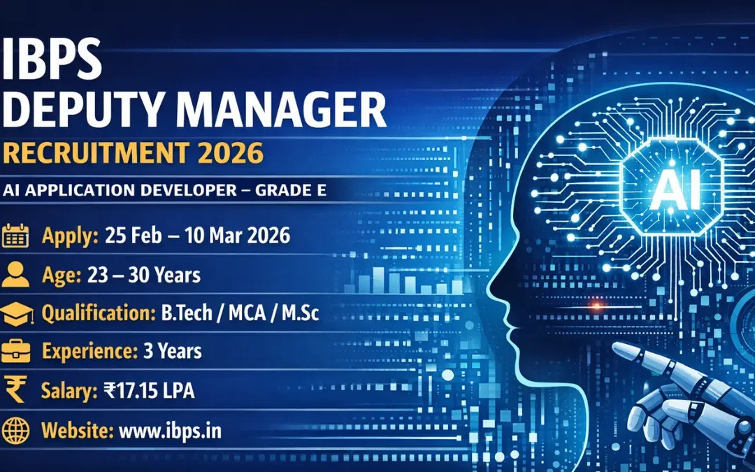 IBPS Deputy Manager Recruitment 2026: The Institute of Banking Personnel Selection (IBPS) has released the official notification for IBPS Deputy Manager Recruitment 2026 for the post of Deputy Manager – AI Application Developer (Grade E) on a regular basis. This recruitment drive invites eligible and experienced candidates with strong backgrounds in Artificial Intelligence, Machine Learning, and Generative AI to apply online through the official website.