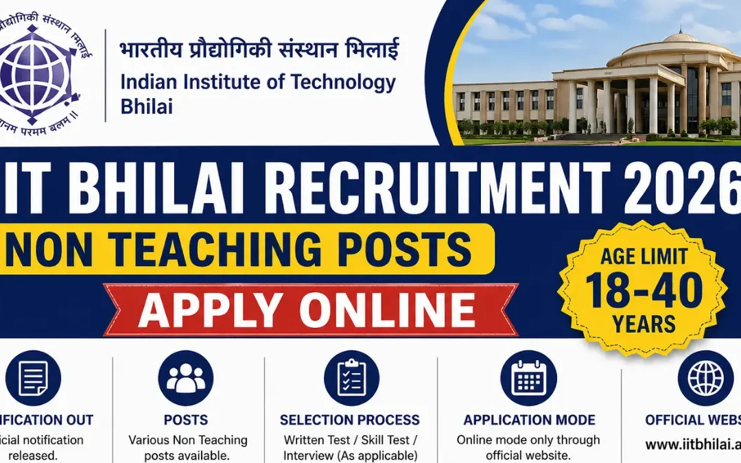 IIT Bhilai Recruitment 2026: The Indian Institute of Technology Bhilai has released the Recruitment 2026 notification for 47 non-teaching vacancies across various administrative and technical positions. The online application process started on 27 April 2026, and eligible candidates can apply through the official portal.