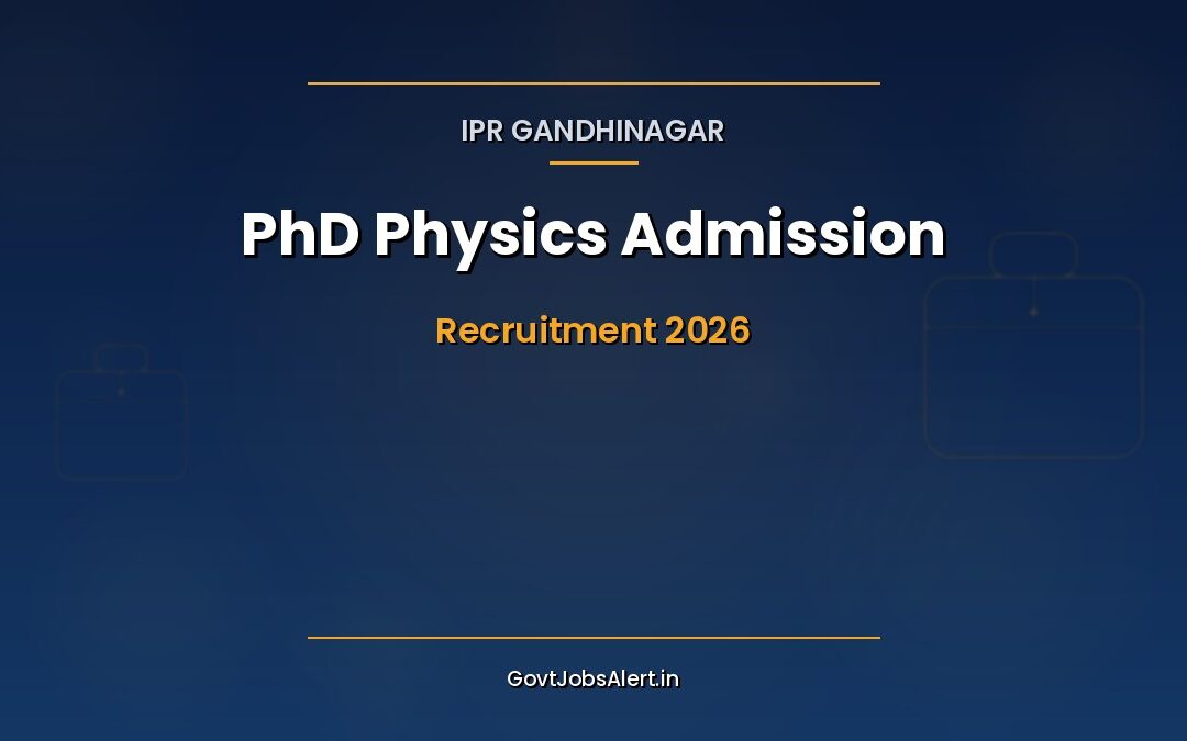 If you hold an M.Sc in Physics with at least 60% marks and have cleared GATE / NET / JEST, this is a prestigious research opportunity. The online application has started on 13 April 2026 and the last date to apply is 3 May 2026. Read the full details on GovtJobsAlert.in. If you’re looking for government jobs in Gujarat, IPR offers a world-class research career path.