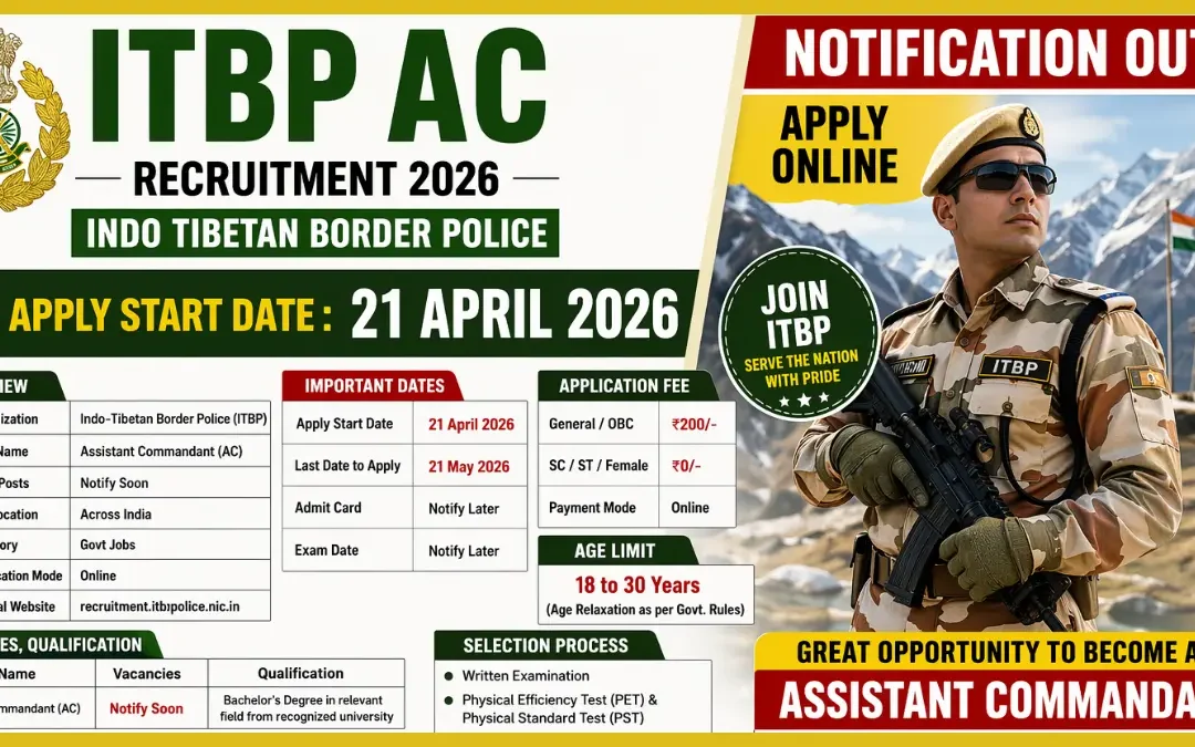 The ITBP AC Recruitment 2026 includes important details such as application dates, eligibility criteria, age limit, selection process, and exam pattern. Candidates are advised to carefully read the notification before applying to ensure they meet all eligibility requirements.