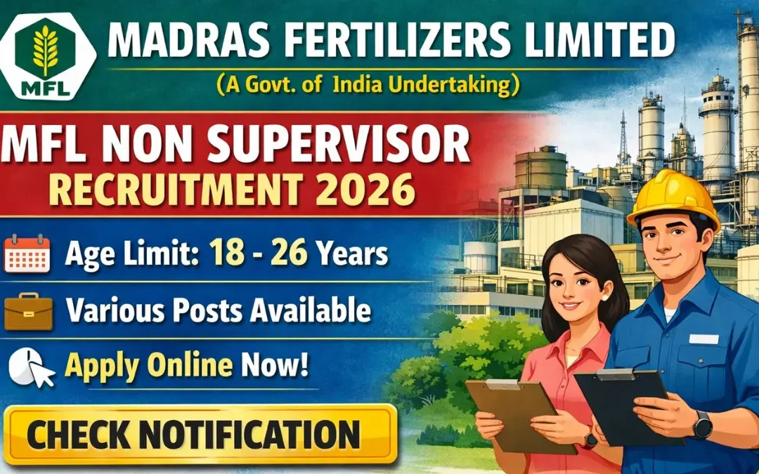 MFL Non Supervisor Recruitment 2026: Madras Fertilizers Limited (MFL) has released an official notification for Non-Supervisory Cadre Recruitment 2026. This recruitment drive aims to fill various technical and non-technical posts including Technical Assistant Trainee, Technician, and Junior Secretary positions. The organization operates under the Government of India and is located in Chennai, Tamil Nadu.