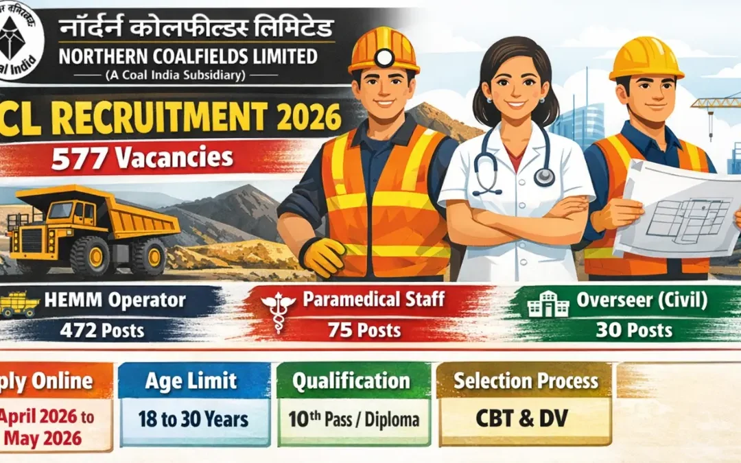 Northern Coalfields Limited Recruitment 2026: Northern Coalfields Limited (NCL), a Miniratna company under Coal India Limited, has released a new recruitment notification for various posts including HEMM Operator (Trainee), Paramedical Staff, and Overseer (Civil). This recruitment drive offers a great opportunity for candidates seeking government jobs in the mining and healthcare sectors.