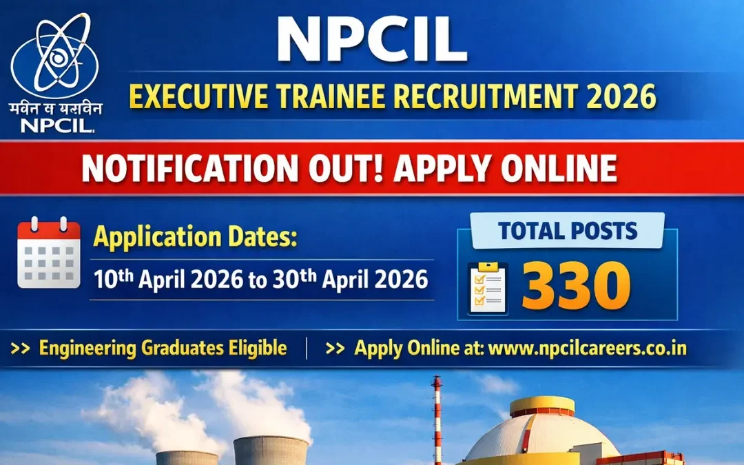 NPCIL Executive Trainee Recruitment 2026: The Nuclear Power Corporation of India Limited has released the notification for Executive Trainee Recruitment 2026, offering a total of 330 vacancies for engineering graduates across various disciplines. The online application process will begin from 10 April 2026 and continue till 30 April 2026. Interested and eligible candidates can apply through the official website within the given dates.