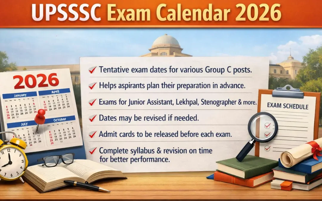 UPPSC Exam Calendar 2026: The UPSSSC Exam Calendar 2026 has been officially released by the Uttar Pradesh Subordinate Services Selection Commission to inform candidates about upcoming recruitment examinations. The calendar includes tentative exam dates for various Group C posts conducted throughout the year 2026. It helps aspirants plan their preparation strategy in advance according to the exam schedule.